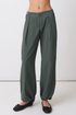 Low-rise, casual tailored trouser with a clean hook-and-eye closure and a flattering front pleat.
