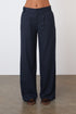 Relaxed, mid-rise, wide leg tailored trouser. Features an edge stitched pleat at the centre of the leg, functional front pockets and a v-shaped back yolk with welt pockets. Complete with tonal mock horn button tabs at the waistband you can adjust to your comfort. Named after one of our favourite tailoring legends, Annie Lennox.