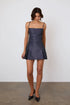 The Michele Dress in Aubergine, inspired by Romy and Michele’s High School Reunion, is made from smooth taffeta. It features box pleats, adjustable straps, a shirred back panel for comfort, and an invisible zip at the centre back.
