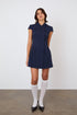 Introducing The Missy Dress, Midnight. Inspired by our best-selling Missy Blouse, now reimagined as a mini dress, this fitted cap sleeve design features a curved wide collar and delicate mother-of-pearl-style buttons, offering a fresh take on a beloved classic.