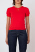 The Peachy Tee in Tomato is a shrunken-fit t-shirt featuring a scoop neckline and puff sleeves. Crafted from 100% cotton jersey, it’s a versatile everyday staple.