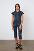 An elongated take on the classic bike short. Mid-rise fit with sculpting seams and side vents. Cut in recycled seersucker, now in Selvedge—a deep blue check inspired by dark denim selvedge.