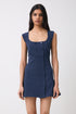 Playful mini dress with square neckline, dropped waist and a subtle a-line shape.
